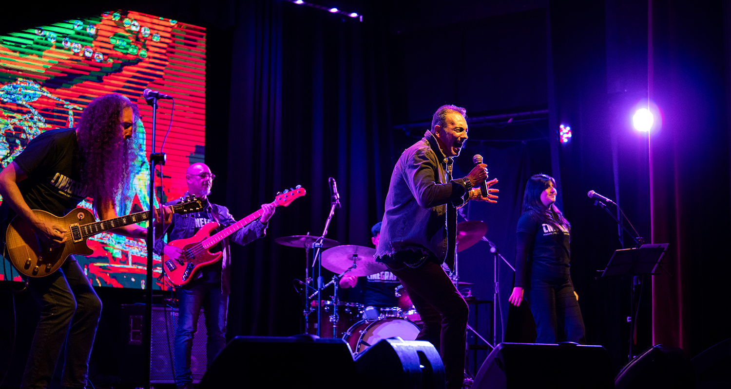 Cinegraf, la banda integrada por Hernán Plano (dirección y voz), Daniel Carabes (batería), Matías Requena (teclados), Marcelo Tega (bajo), Marcelo Barrera (guitarra) y Coral Cano (coros), presenta un viaje musical por la historia y la banda sonora de quienes crecieron en los ‘60, ‘70 y ‘80. La generación que se crió en la vereda del barrio, entre el Winco y los vinilos, los asaltos, las discos, los lentos y las canciones grabadas directo de la radio. La que tuvo el privilegio de crecer con la mejor música de todos los tiempos. Y sí… la que también festejó tres Copas del Mundo.